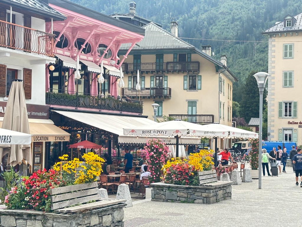 Chamonix is filled with shops supporting alpine outdoor adventure, restaurants, and local stores.
