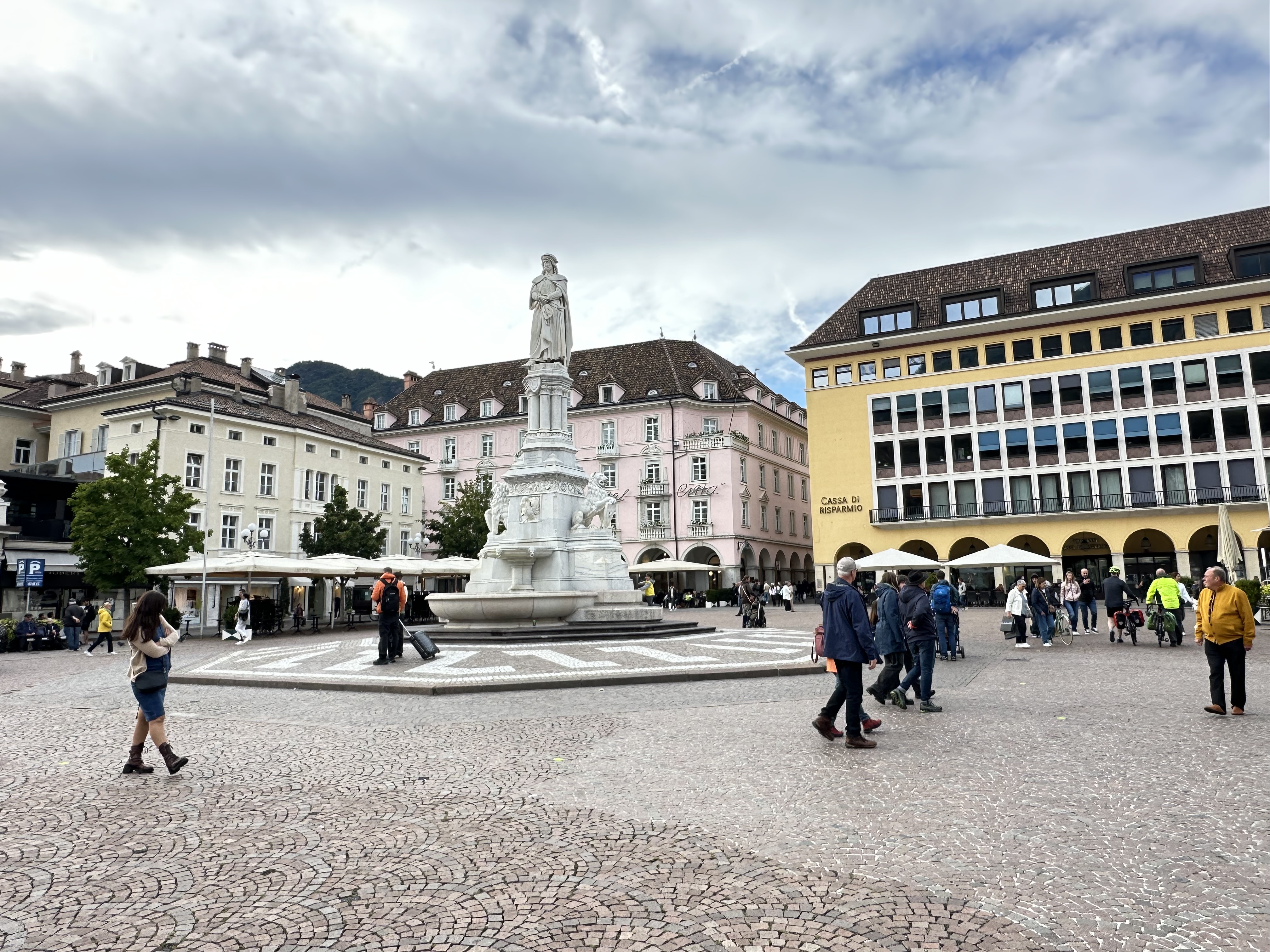 Admittedly, I didn’t know much about this region and was very surprised: Bolzano is a living history lesson. The City of Bolzano is the capital of the autonomous Bolzano region, meaning they keep 90% of paid taxes amount along with other pecuniary benefits. Most surprisingly is that Bolzano is not very Italian at all. Am I in the right country? The old part of Bolzano looks mostly like a 19th century German city with small scale medieval roots. The street signs are in German, and more often than not, German, not Italian, is spoken. For good reason. Prior to WWI, Bolzano was part of Austria. But after that war, Mussolini, with the approval of some friends, annexed Bolzano into Italy. Some but not all of the German speaking population accepted Mussolini’s gracious invitation to flee. Italians, including some from southern Sicily, were encouraged by the fascist dictator to relocate here. Austrians who remained were required to Italianize their surnames. Though mostly German speaking, Bolzano is multi-cultural. Italian and to as lessor extent Ladino (a Romance language spoken in northern Italy, mainly in the Dolomite Mountains) is also spoken here. Apparently, locals must choose their language and government resources and jobs are allocated accordingly. Mussolini created a newer part of the city, which is filled with fascist architecture, including the Victory Monument, where they extolled that: Here at the border of the fatherland set down the banner. From this point on we educated the others with language, law and culture.