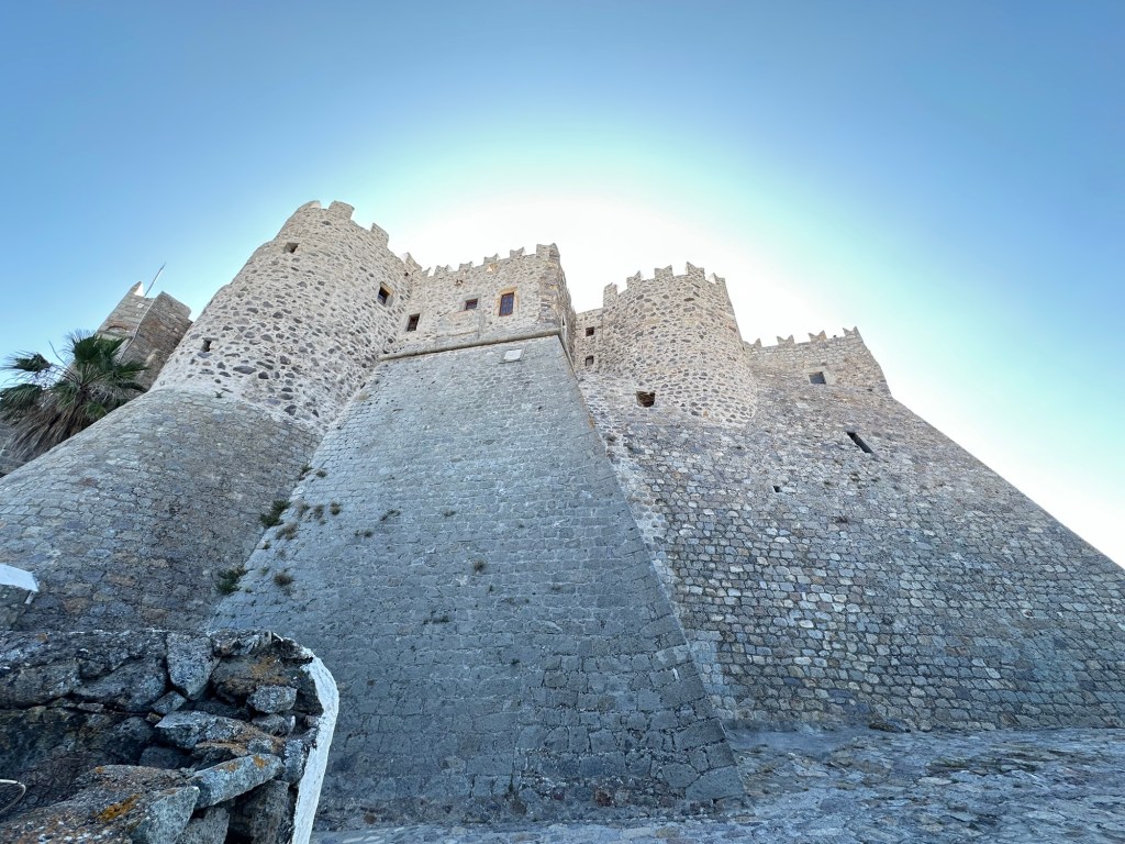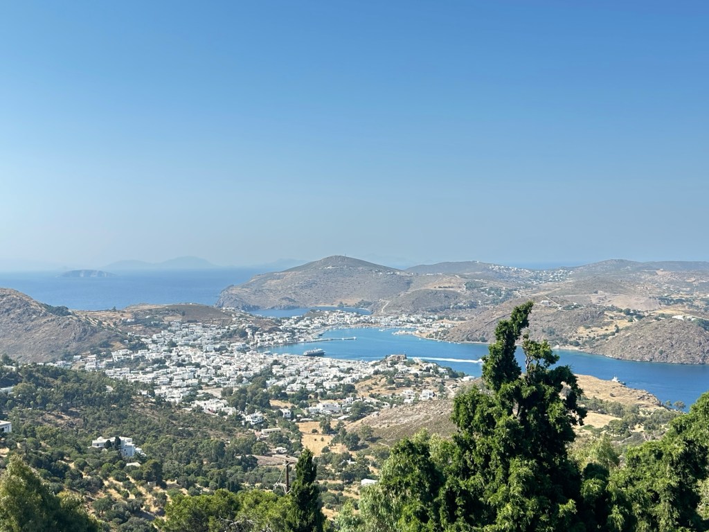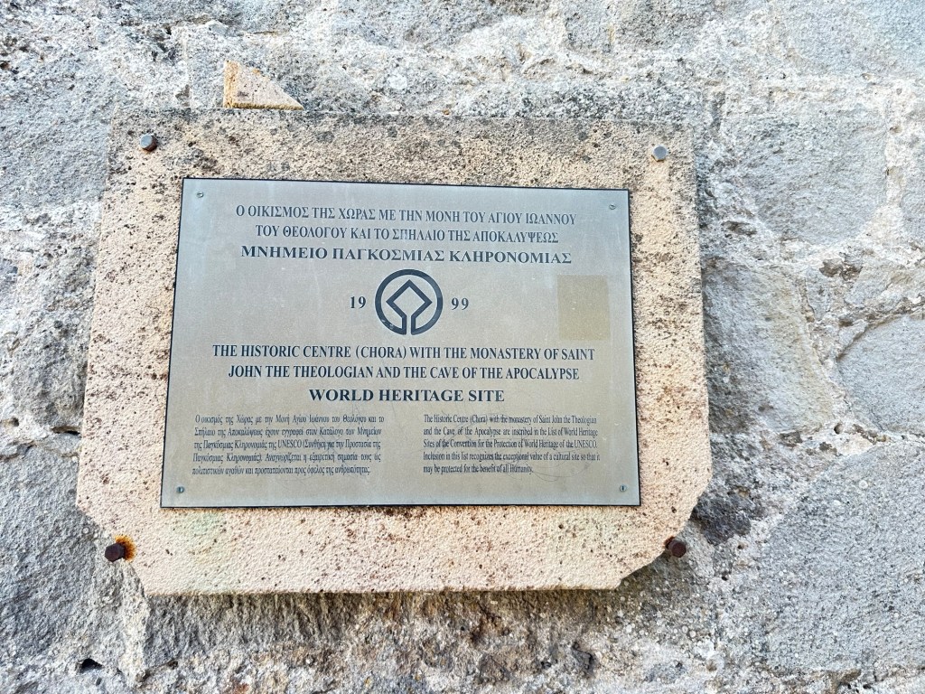 The second site to visit is further up the hillside, perched like a crown on the island’s central ridge, the city of Chora is visible from afar, its labyrinth of whitewashed houses and narrow stone lanes spiraling out from the formidable Monastery of Saint John the Theologian. This UNESCO World Heritage site is more than a village—it’s a living monument to both Byzantine tradition and Greek island life.