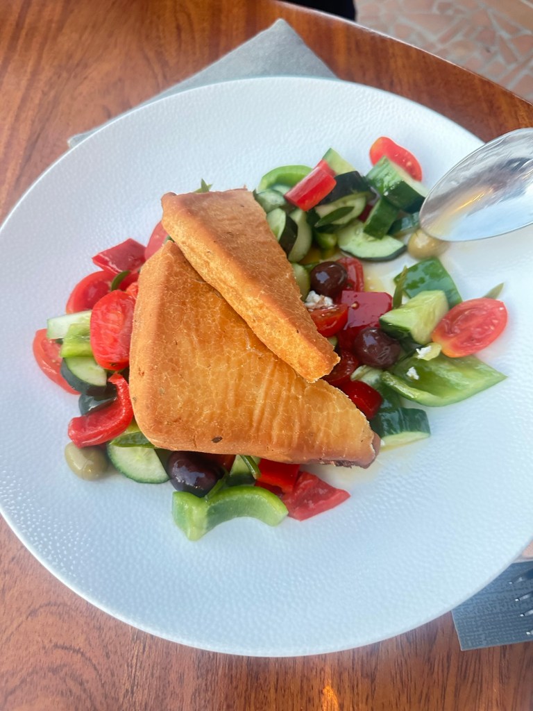 This is our last day in Patmos. Before taking over night ferry back to Athens for a morning flight to Paros, we enjoy an excellent dinner at Benetos Restaurant (https://benetosrestaurant.com/) not far from the Petra.