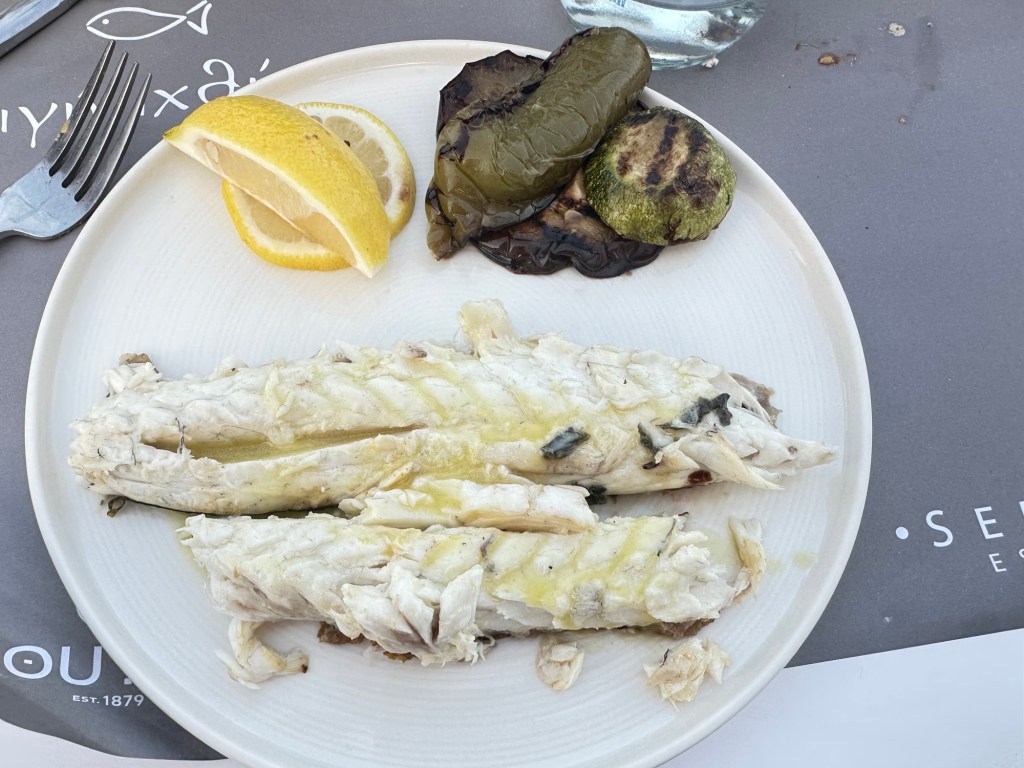 We capped off the day with dinner at Sigi Ikthios (http://m.paros-restaurants.gr/), located just a couple of feet from the boat dock in the heart of the Naoussa. The Northern winds wip as we dine and carry a chill that turns off and on at any moment as if connected to a switch. Three of us ordered sea bass, prepared table-side.