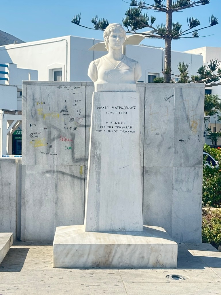 Evi explains the history of Paros to us; it has been ruled by various powers throughout its long and complex history of struggle and independence. Evi further tells us of the efforts of Manto Mavrogenous, a Greek princess and wealthy aristocrat, who is central to ultimate Greek independence.