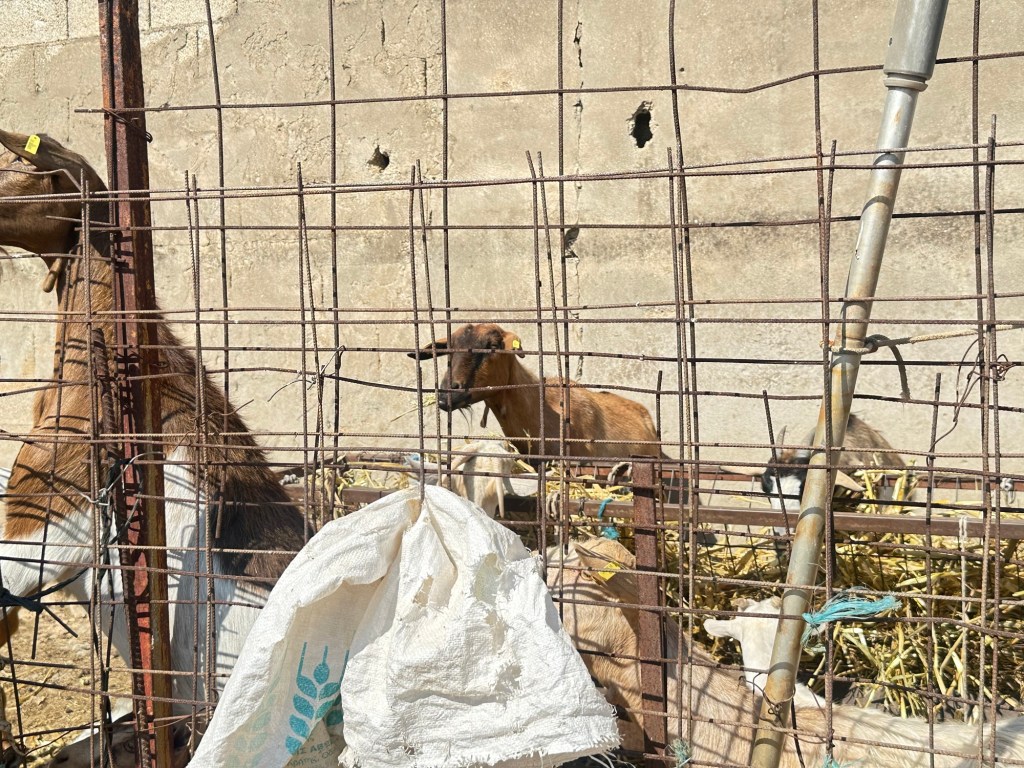 Once inside the gate, we’re met by a curious gathering of goats—some bold, some cautious—all watching us with wary eyes and twitching ears. They mill around the Defender, their bells clinking softly in the stillness. Off in the distance, we spot a scattered herd of sheep dotting the slope of the mountain, like woolly punctuation marks across the scrub. The air smells of thyme, dust, and animal warmth. We’ve clearly entered their world now.