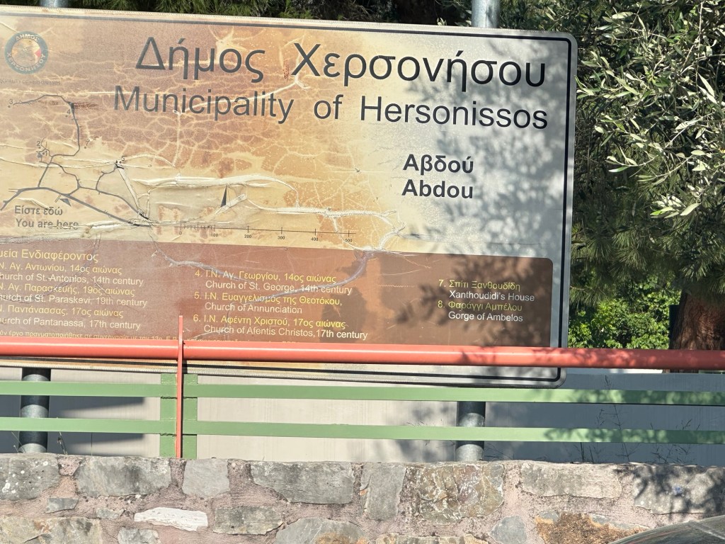 Abdou itself is a small, traditional village tucked away in the mountains of Crete, located on the southern slopes of Mount Dikti. This village is quiet and unspoiled by mass tourism, giving us a chance to experience the rhythms of rural Cretan life. Old stone houses covered in vines, narrow alleyways, and friendly locals define its charm. Some of the houses are in ruins, and others redone.