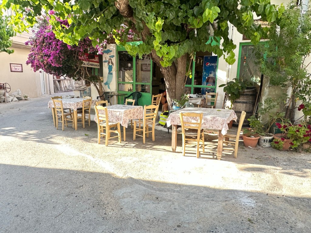 In the tucked-away village of Abdou, we met Antonas, our local guide, and his assistant, Manos (1 of 4 Manos we would meet that day). We gathered in a traditional taverna, owned by a man named George, and shared pistachio gelato and sipped Greek coffee beneath flowering vines. With the rhythm of the island in his voice, Antonas recounts Crete’s epic past—from Minoan kings and Venetian walls to Ottoman resistance and village uprisings. Antonas’ face bears the lines of generations, and his heart beats with the stubborn pride of an island that has never truly been conquered.