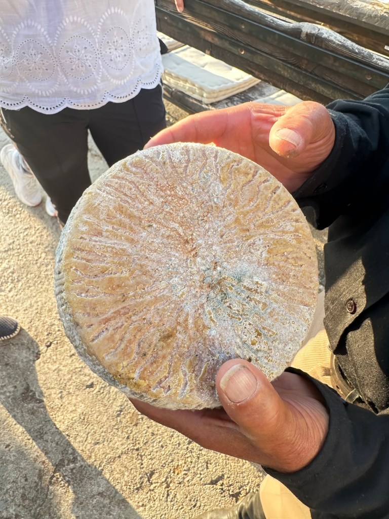 After our walk through Abdou, we piled back into the Defender and wound our way higher into the hills. En route, we stopped in a tiny mountain village where Demetrios needed to pick up a few supplies. While he ran his errand, I wandered across the street and discovered a roadside artist quietly working beside a scattering of painted gourds. His specialty? Painting on dried gourds. I couldn’t resist. I bought one painted like a giraffe for CJ, my granddaughter. It felt like the perfect bit of Crete to bring home.