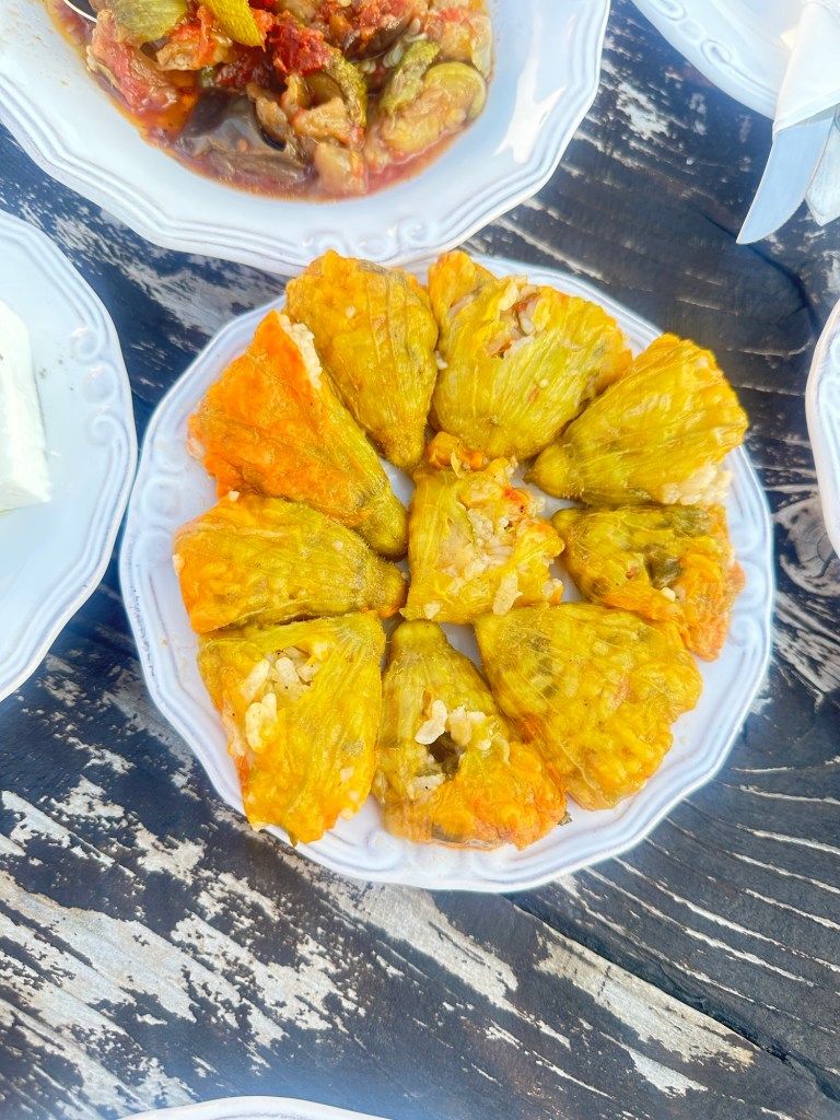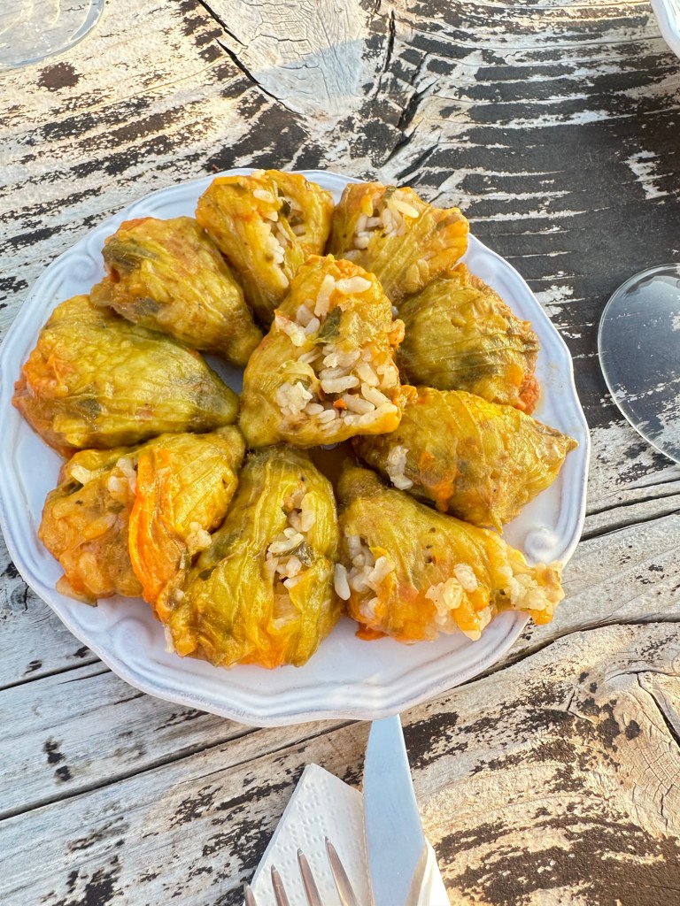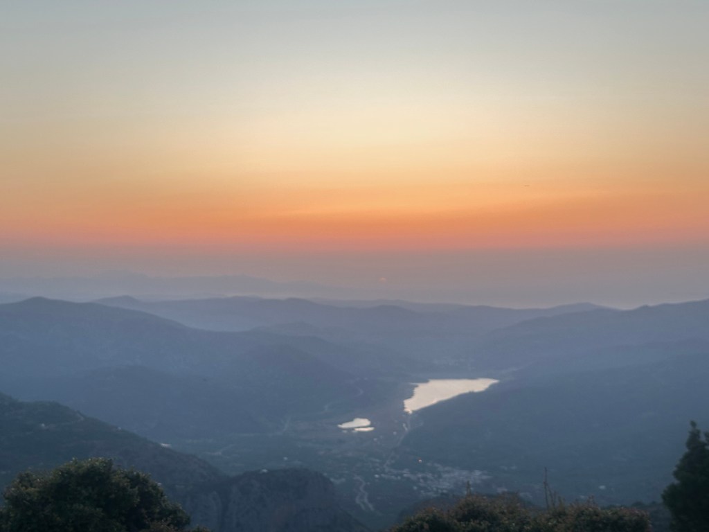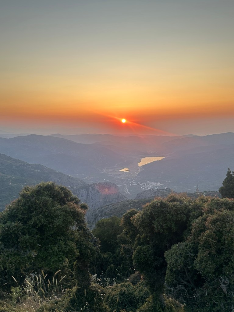 We return to the table to finish dinner, the last of the dishes passed between us. Conversation softens as the sun begins its slow descent behind the hills of the mountain. The sky turns honeyed gold, then deep rose, casting long shadows across the stone terrace. We sit in quiet awe, glasses in hand, watching the day melt into evening. It’s not just a meal—it’s a memory, etched in the light of a Cretan sunset.