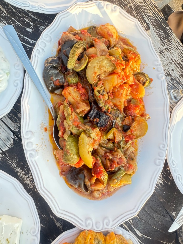 There’s a peaceful, timeless feel here. You can almost hear the tinkling of raki glasses and the slow clink of forks, backed by the soft hum of Cretan music and warm conversation. It’s the kind of table where memories are made.