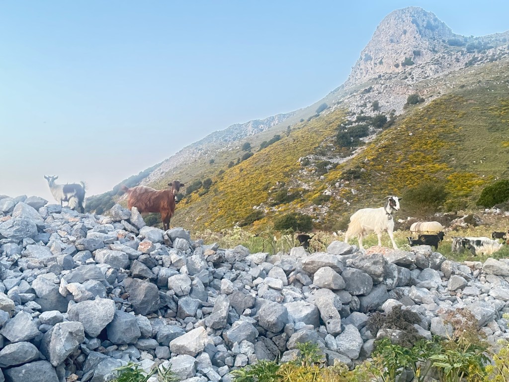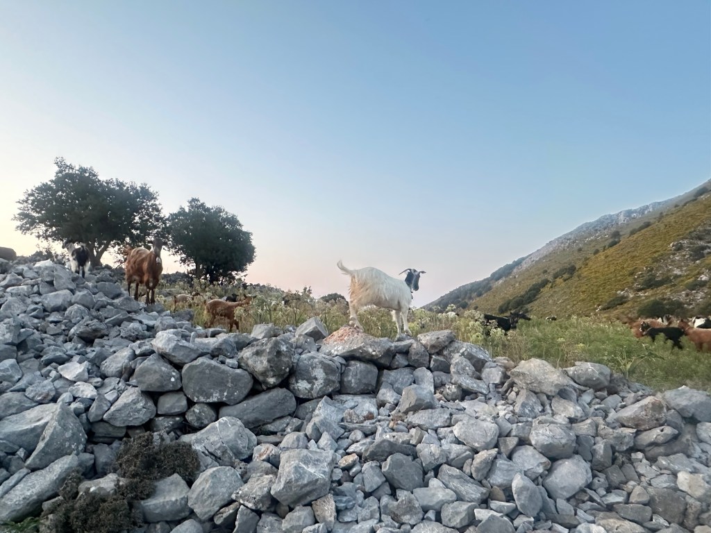 More and more goats appear along the way. Whether darting across sheer ridgelines or lazing in the shade of an olive tree, goats are both a living connection to Crete’s pastoral traditions and a vital part of its identity.