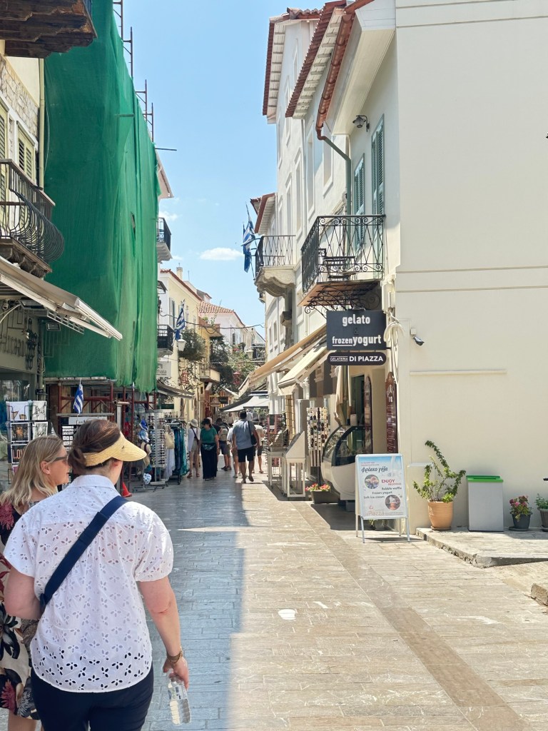 David and Patoula next took us to Nafplio, the elegant seaport town that once held the title of Greece’s first capital, from 1823 until 1834, before the capital was moved to Athens. With its neoclassical buildings, flower-draped balconies, and narrow cobbled lanes, Nafplio offers a charming blend of Venetian, Ottoman, and Greek influence. Nafpilo is a city that has stature, and very much looks like a place with a powerful past.