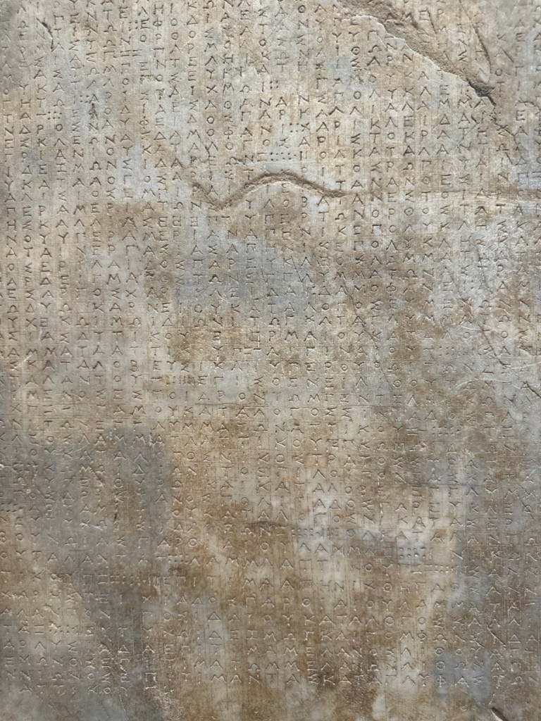 After a bit of a drive, we met Patoula, our local guide for the day, and followed her to the Ancient Theatre at the Asklepieion of Epidaurus. The midday heat was intense. The sun beat down on us relentlessly as we followed the central steps, slowly ascending to the very top of the amphitheater.