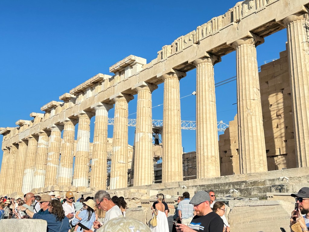 Eleni guides us skillfully through the growing crowds, always seeming to find the perfect pocket of calm—whether to share insight, to step out of the sun, to capture the best photos (many of which she kindly takes for us), or simply to pause and observe. The value of having Eleni with us cannot be overstated; her presence elevates every moment, transforming a visit into a learning experience, rather than an uninformed visit swallowed in the masses.