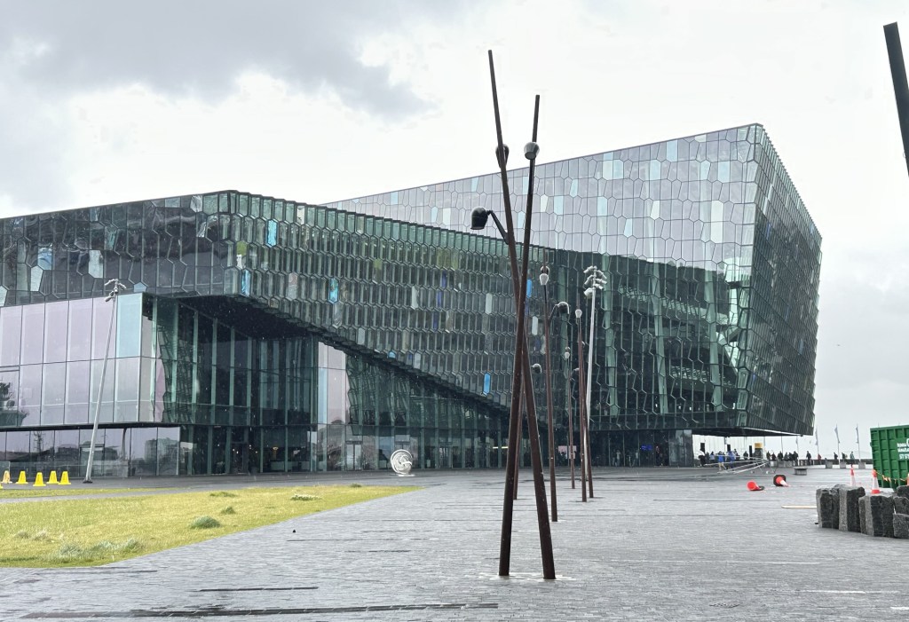 Our room offered an inviting view of the Harpa Concert Hall, home to the Iceland Symphony Orchestra. Poised at the edge of the North Atlantic, Harpa rises like a crystalline iceberg from the harbor, its shimmering glass façade refracting Iceland’s mercurial weather—glowing amber beneath the sun, then turning dark and moody under brooding skies. Designed by the Danish firm Henning Larsen in collaboration with Icelandic artist Ólafur Elíasson, it’s a striking work of modern architecture: a honeycomb of geometric glass panes that ripple with shifting light and motion. I certainly wish we had seen the interior of this magnificent structure, and to hear the orchestra play in its orchestral chamber. Neither was in the cards for this trip.
