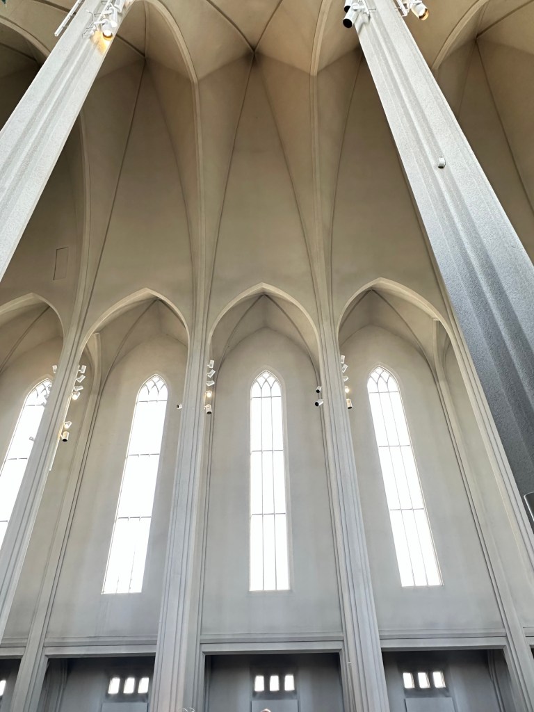 From a distance, it looks like a rocket ship carved from lava rock; up close, it feels solemn and surreal, like stepping into the pages of a myth. Inside, the sanctuary is spare and luminous, filled with soft northern light and the ethereal sounds of its massive pipe organ—over 5,000 pipes strong.