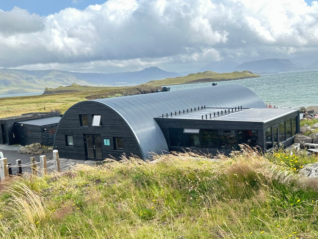 A small eatery serves locally sourced fare, a wood-fired sauna hums quietly nearby, and the Atlantic laps at your feet as you wade between worlds—between hot and cold, past and present, land and sea.