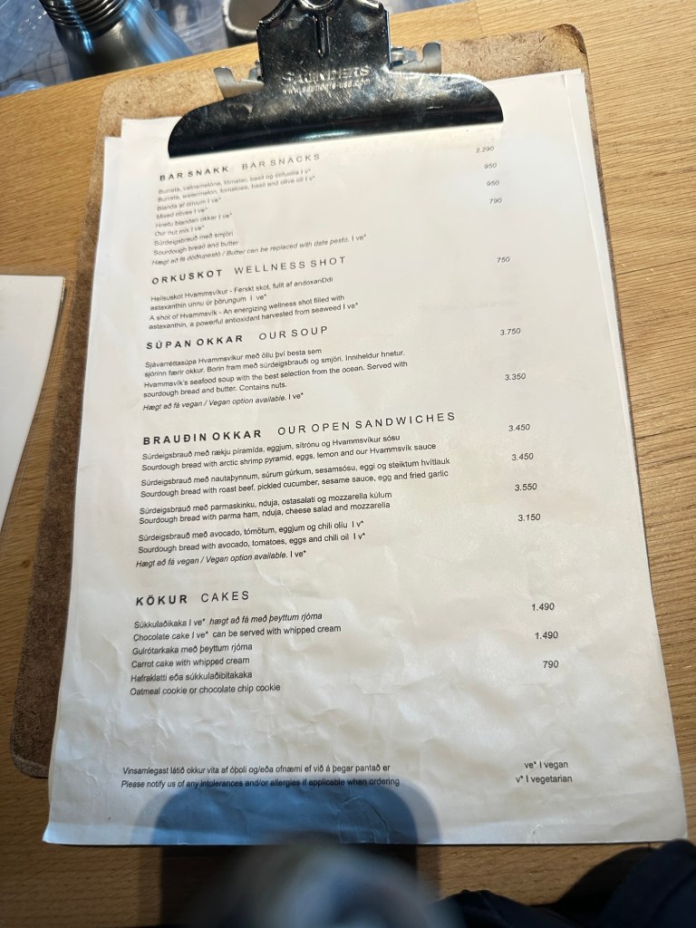 After a jet-lagged nap, we ventured out into a cold, rainy Reykjavík, then returned for dinner at the hotel’s restaurant, Tides.