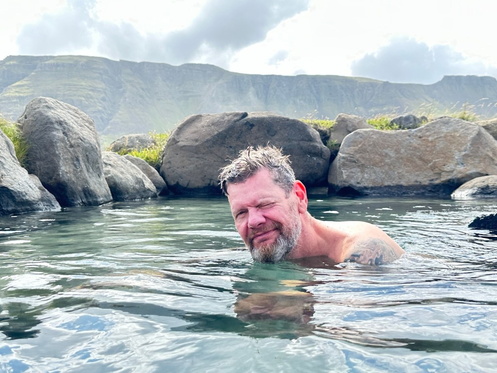 We were met at the airport by Kristinn Thorarensen (aka Kiddi) the co-founder of Absorb Iceland, the company that planned our trip and handled all the logistics. His face is a map of Iceland—rugged, open, and alive with stories. Laughter comes easily, carving soft lines at the corners of his eyes. He talks the way rivers run—steady, curious, and full of unexpected turns. Weathered by wind but warmed by wit, he’s as much the soul of the land as its stone and sky.