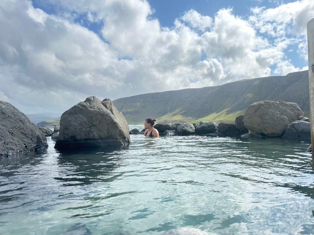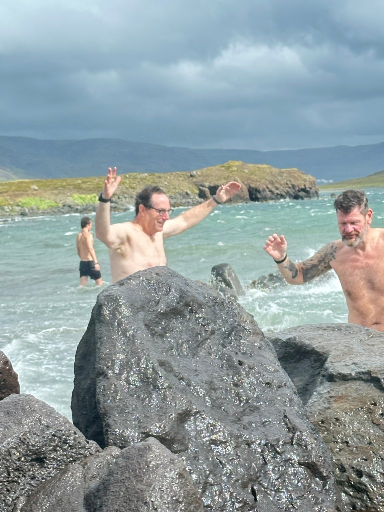 In the hottest pool, the water reaches 104°F. Just steps away, a second pool is etched into the foot of the ocean, where the temperatures hover near freezing. The contrast is bracing—exhilarating, even. Today, the wind whipping off the Atlantic exceeded 80 miles per hour. The simple act of rising from the steaming water delivers a sharp, biting sting, as if the air itself were alive with ice.