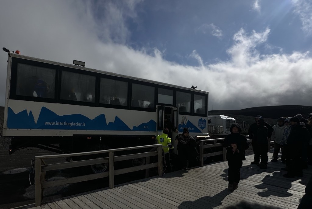 Our second stop, Langjökull Glacier (“Long Glacier”), is Iceland’s second-largest ice cap—stretching across 368 square miles, with ice up to 1,900 feet thick and rising to nearly 4,760 feet above sea level. Kristinn dropped us off at the Húsafell Activity Center, where we boarded a shuttle bus bound for Klaki Base Camp, the staging point for our glacier adventure.