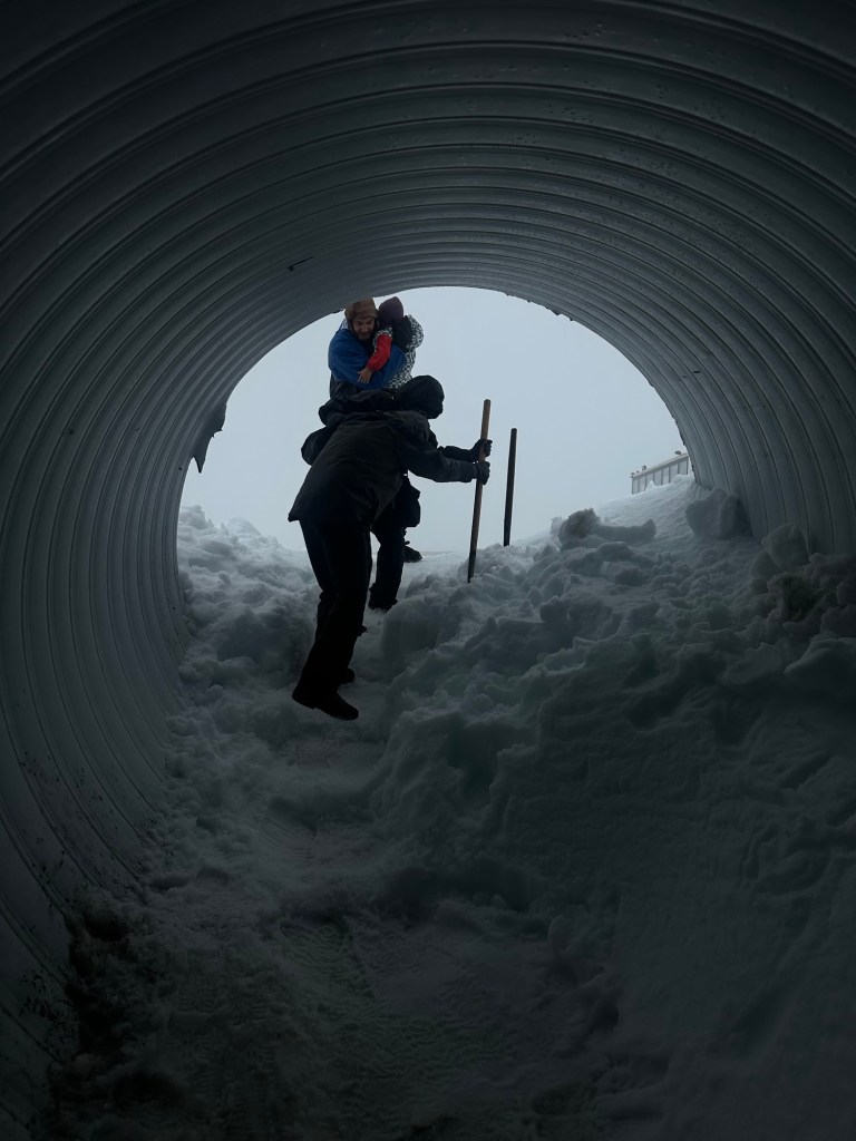 I looked back and caught a quick video of Bud and Judy performing their own impromptu ballet as they attempted to enter the tunnel—an icy pas de deux of slipping, sliding, and flailing limbs worthy of its own standing ovation. Memory building, Indeed.