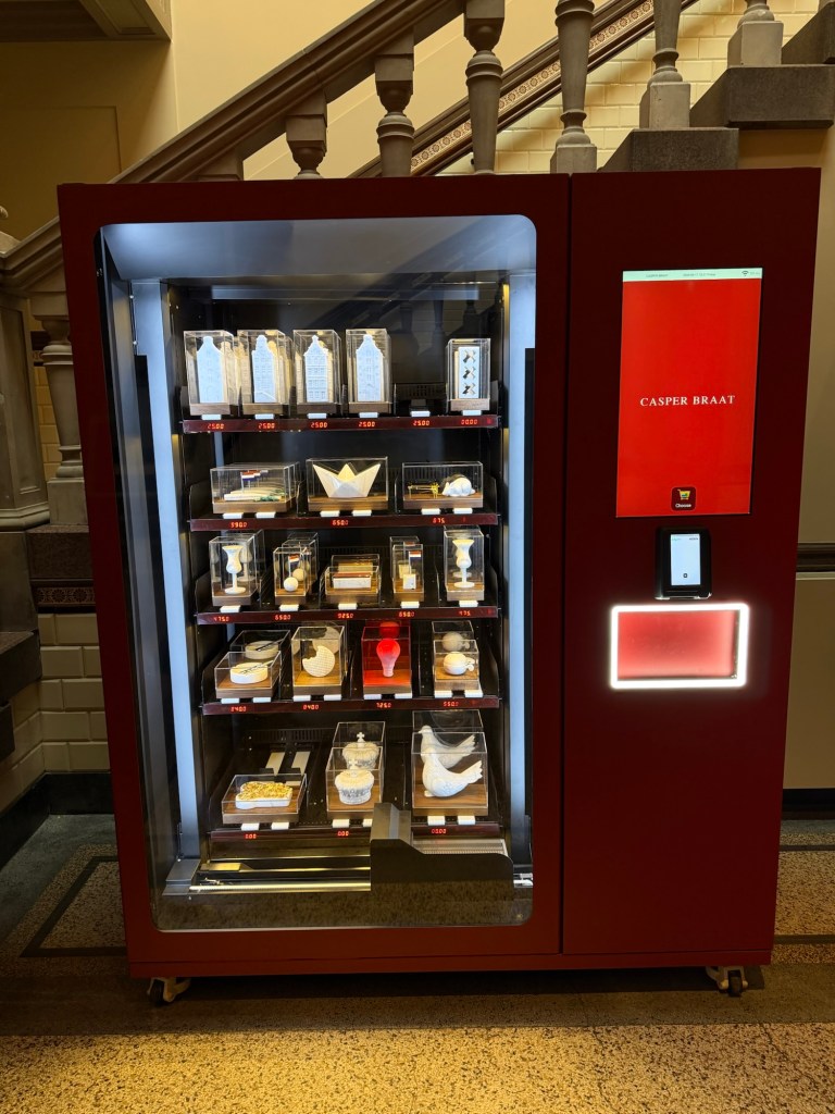 You’ll see sculpture, mixed media, and installations that play with light, space, texture, and even humor, such as the art vending machine.