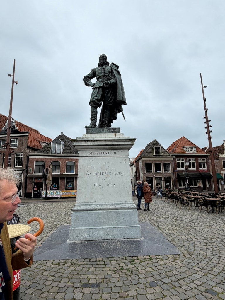 Case in point, Joris brought us to the statue of Jan Pieterszoon Coen—a 17th-century Dutch figure (1587–1629) and a central figure in the VOC. Today, he is viewed by some through a more critical lens, given his role in establishing Dutch colonial control in Asia, particularly in Indonesia. Whether villain or hero, Coen is undeniably part of history, his statue removed or not.