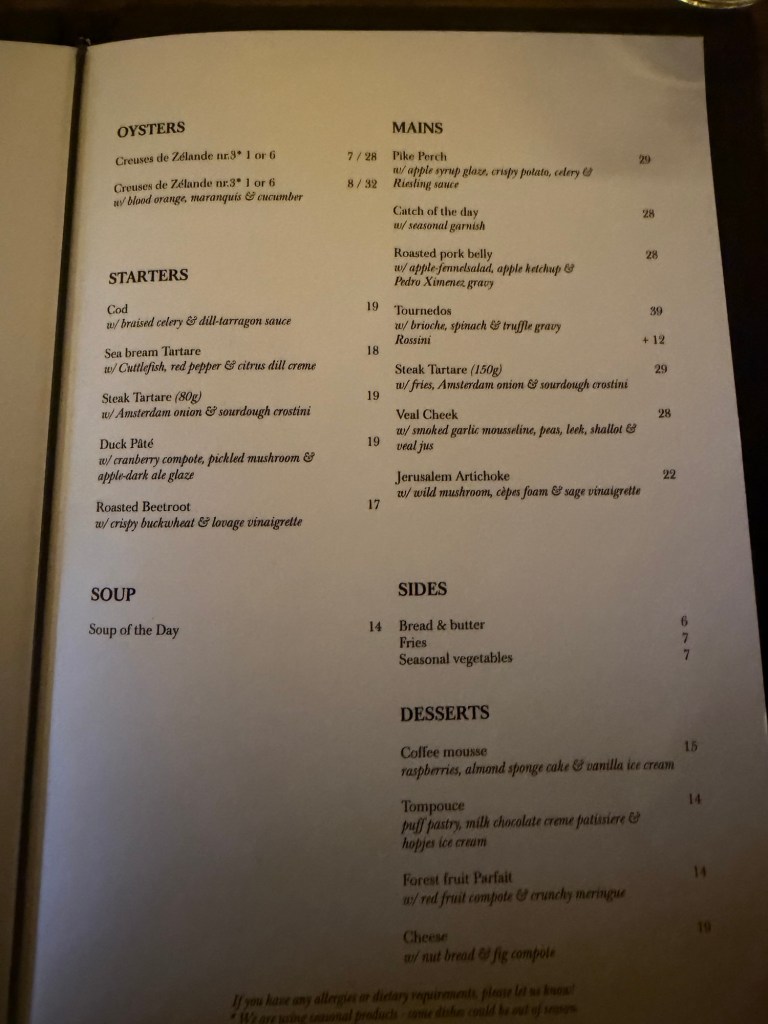 I opted for the mystery meal—a small gamble that turned out very well for my palate. The flavors speak thy mystery: thoughtful, seasonal, and rooted in Dutch tradition but presented with a light, modern touch.