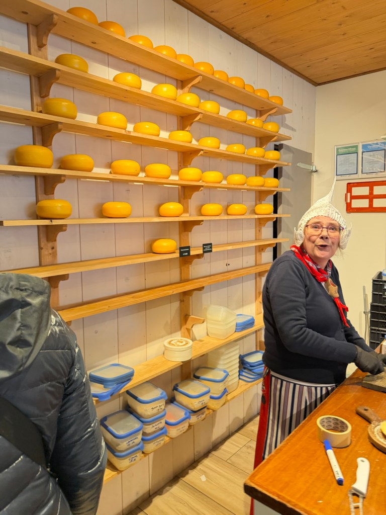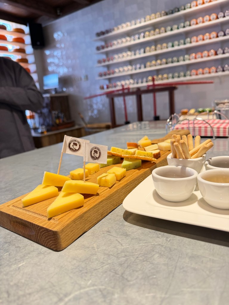 We were at Henri Willig Cheese ( https://henriwillig.com/en/cheese/), one of Amsterdam’s best-known tasting rooms, where rows of glowing wheels lined the walls like edible art and the entire space felt thoughtfully staged without being contrived.