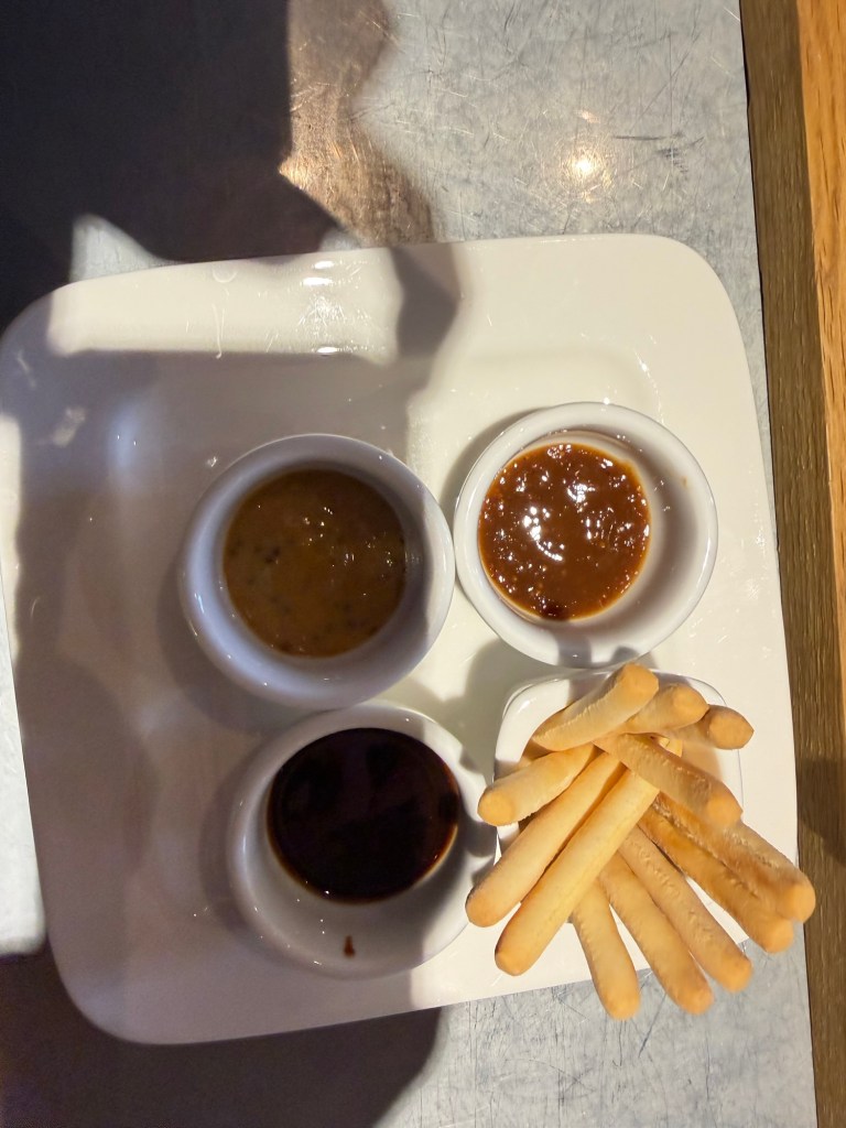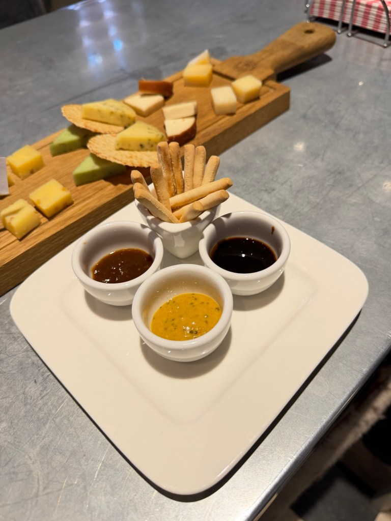 Alongside the cheeses were small accompaniments—mustards, honey and balsamic dips, and crisp breadsticks—that subtly shifted the experience with each pairing. A touch of sweetness here, a bit of tang there, and suddenly the same cheese told a slightly different story.