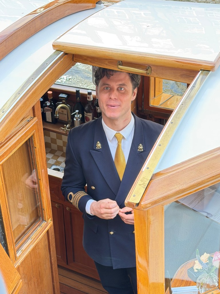 We were then warmly greeted by Captain Will, who immediately set us at ease with a quiet confidence and understated charm. Impeccably dressed in a tailored navy jacket with brass buttons and a gold tie, he looked every bit the part—more like the steward of a private yacht than the captain of a canal boat.