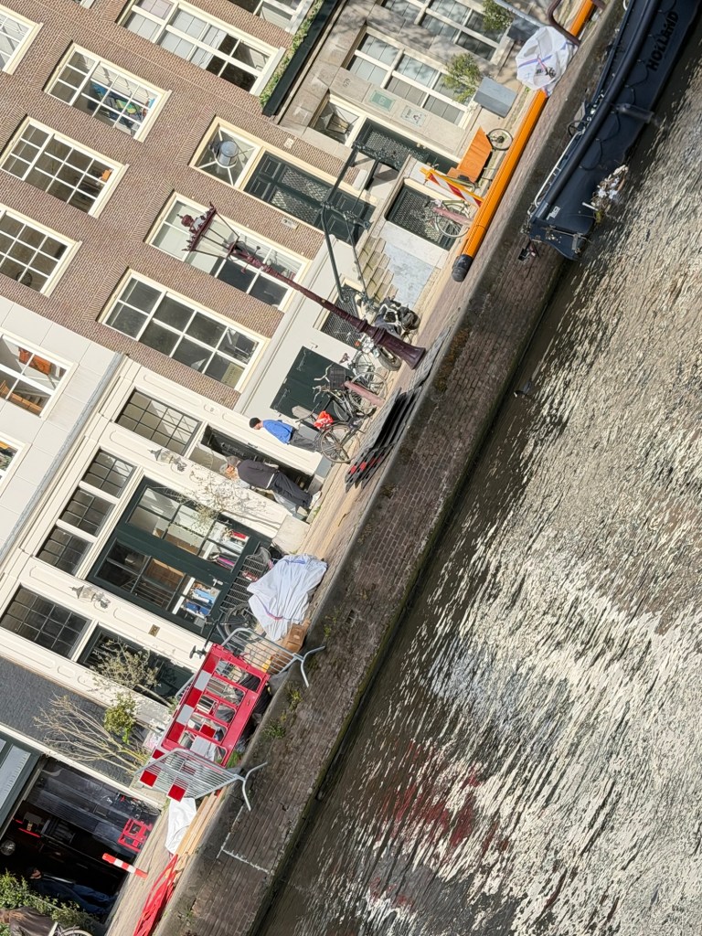 And then there were the small, fleeting moments: a lone boat tied along the wall, ripples catching the light; pedestrians pausing at a bridge to watch us pass; the quiet hum of life along the water. Seen from the canal, Amsterdam feels less like a city to be navigated and more like one to be gently experienced—one slow turn at a time.