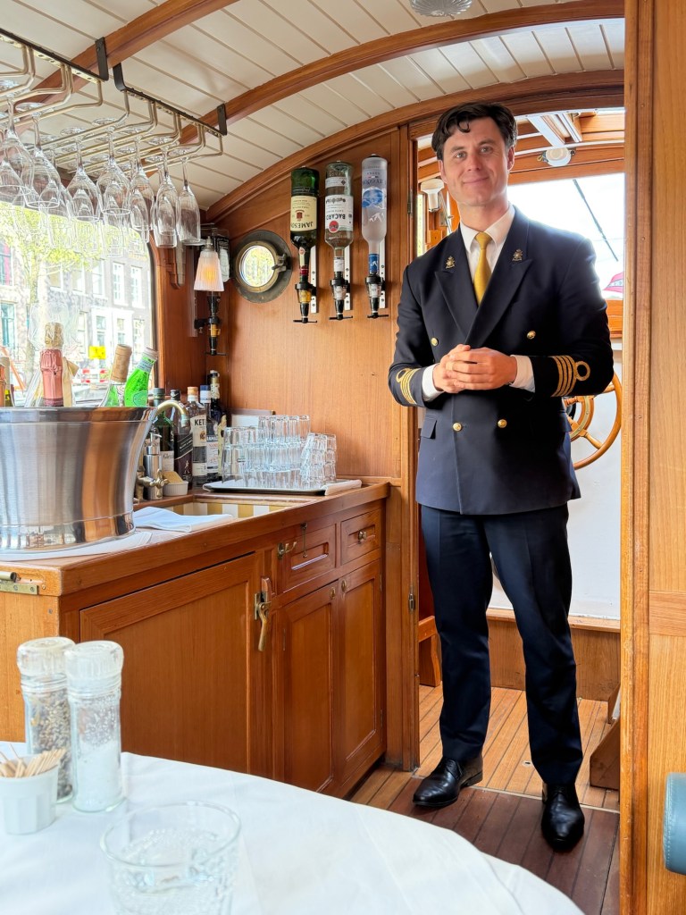 Captain Will was an affable young man, easygoing yet quietly professional. As it turned out, nearly ten years earlier, on one of his first tours, he had hosted Mick Jagger and the Rolling Stones—a detail he shared with a modest smile that made the story all the more memorable. The evening itself had been arranged for us by Thomas Stinglhamber of Brilliantideas.travel (who arranged our entire Benelux excursion) through Private Boat Tours Amsterdam (www.privateboattoursamsterdam.com), and from that point forward everything unfolded exactly as it should.