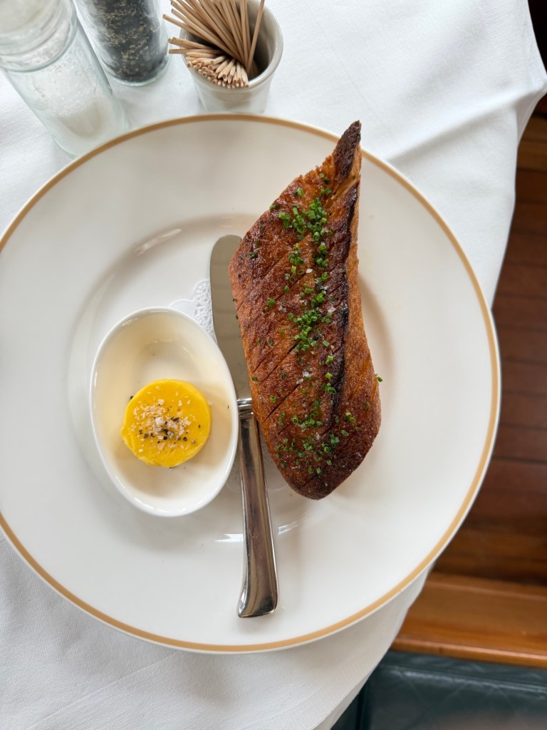 Beth’s tournedos Rossini, by contrast, leaned into pure indulgence—a perfectly cooked tenderloin paired with foie gras, complemented by a crisp rösti and earthy wild spinach. Rich, layered, and deeply satisfying, it was the kind of dish that doesn’t try to hold back.