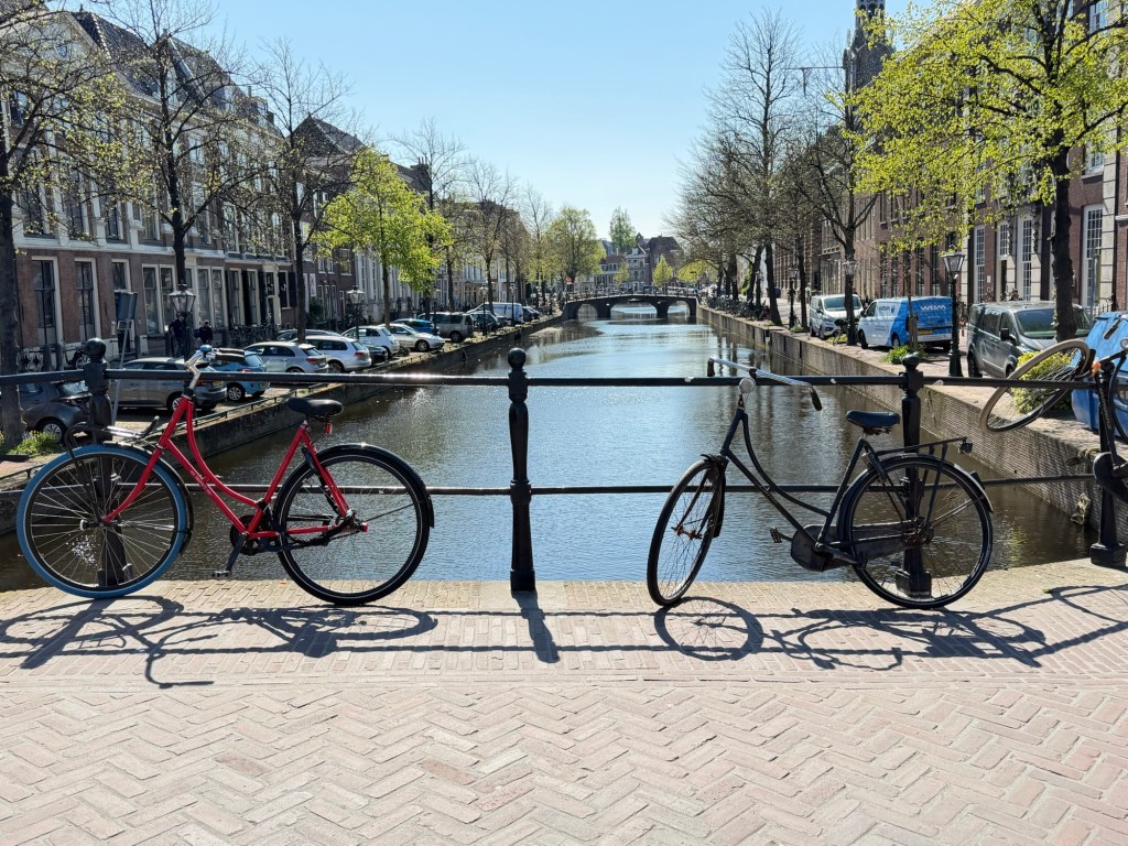 Next, we visited Leiden—about 25 minutes from Keukenhof and roughly 35–40 minutes from Amsterdam—and walked its streets with Joris. The town feels immediately more intimate—narrow canals, brick facades, and stepped gables reflecting a quieter, older rhythm.