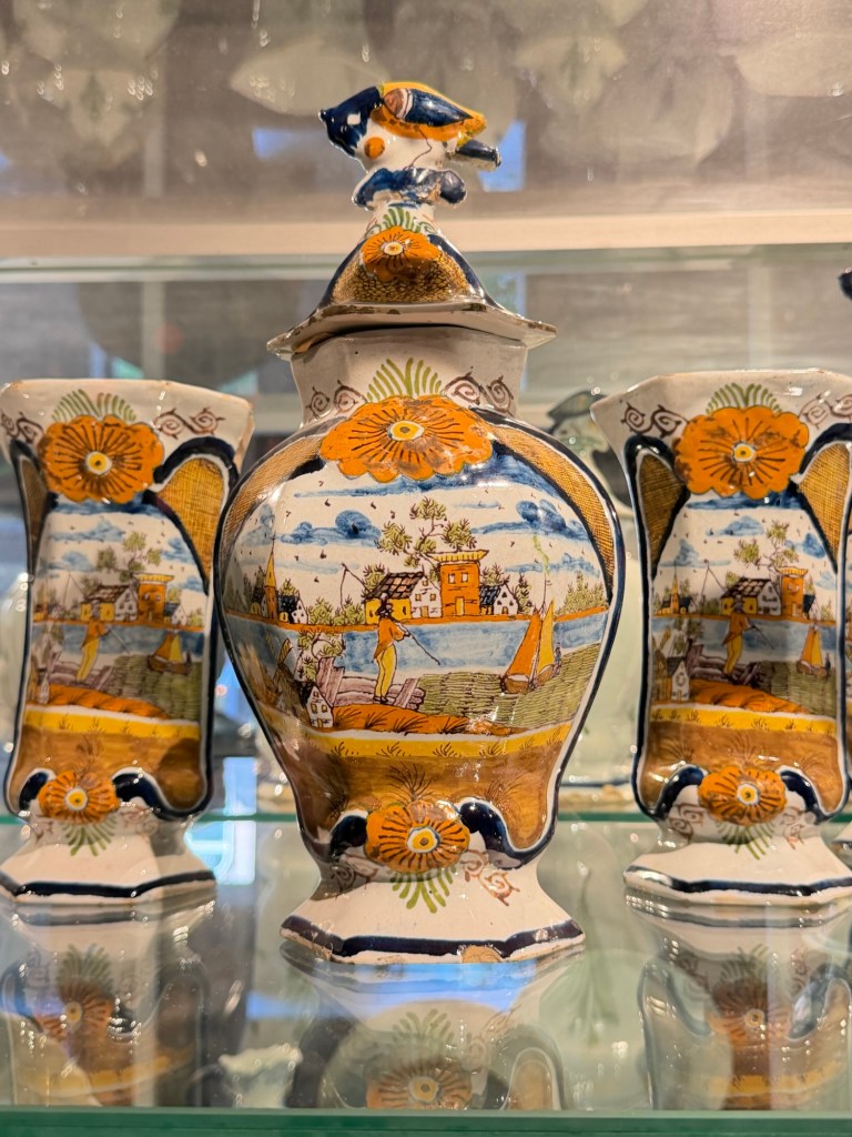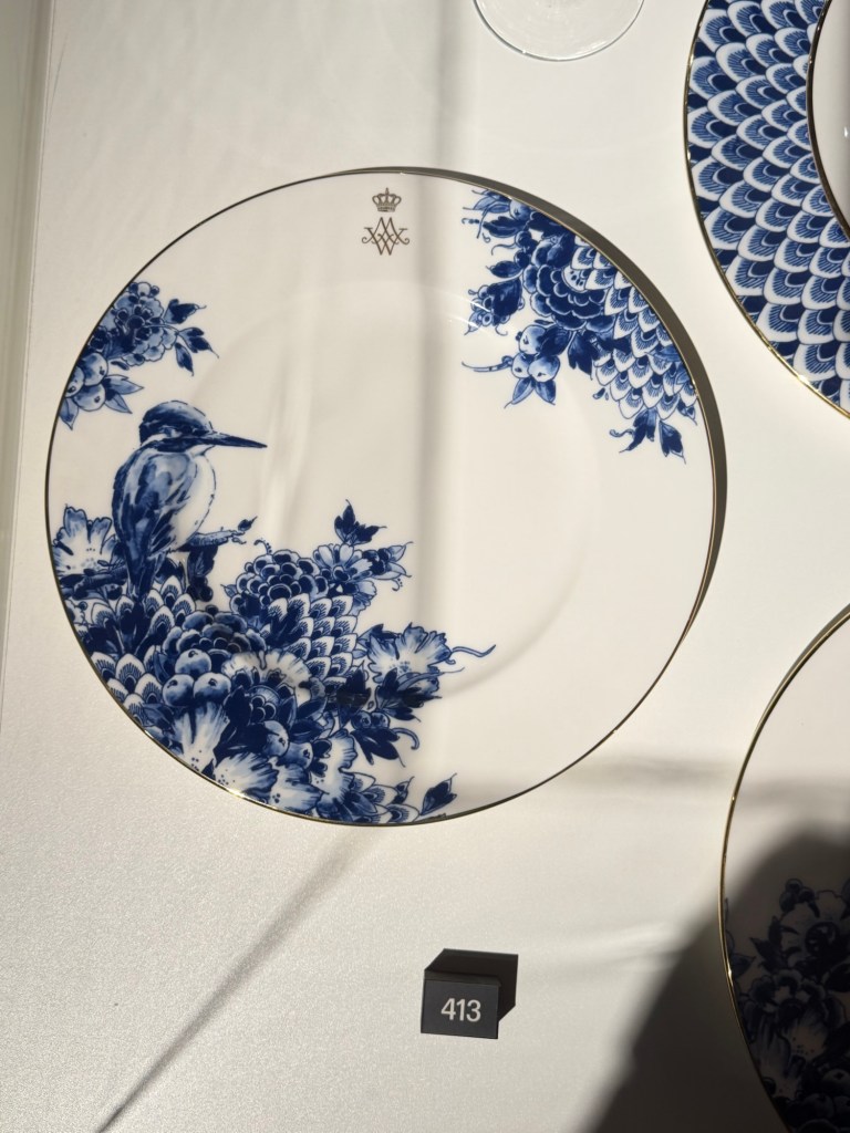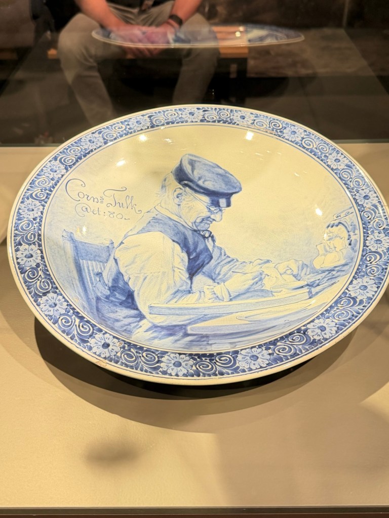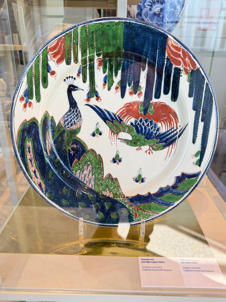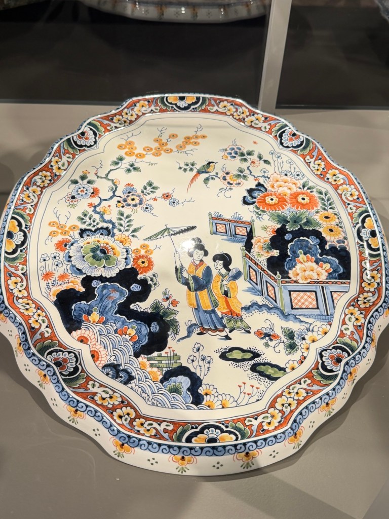 One historical piece stood out: a vibrant dish where East meets West—its central scene of figures, florals, and a garden pavilion echoing Asian design, yet unmistakably rendered in the Dutch tradition.