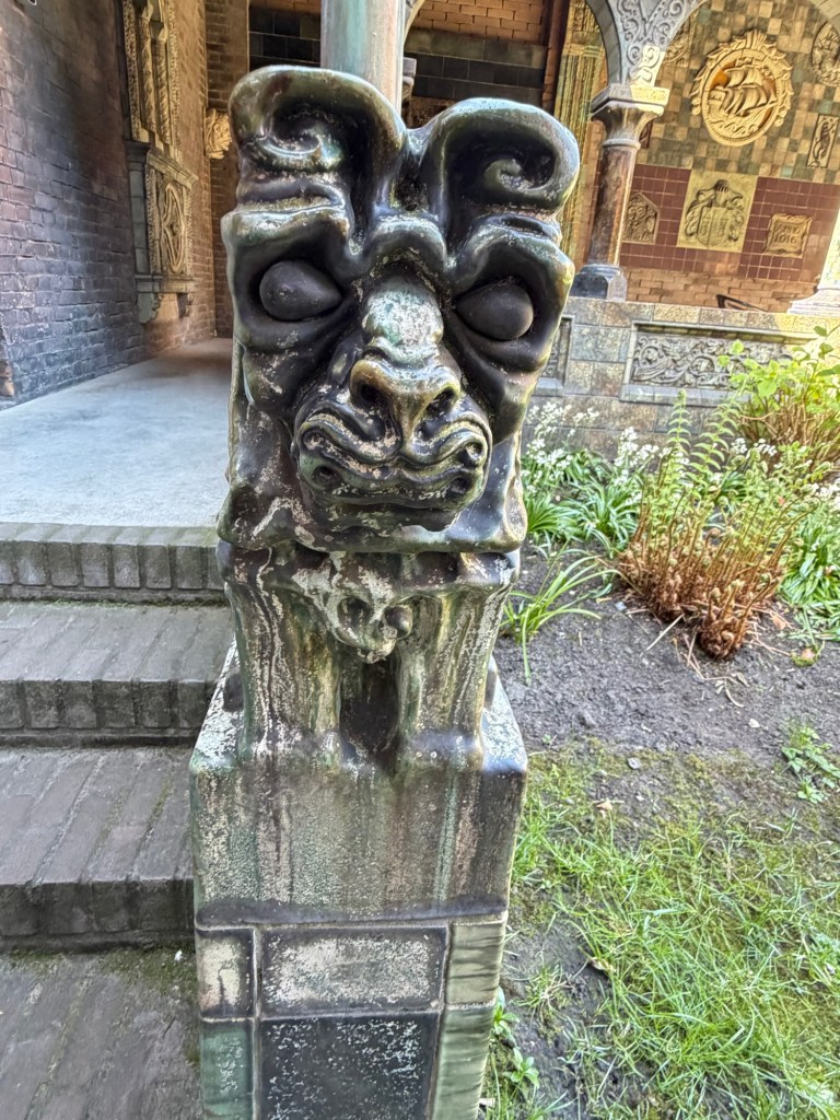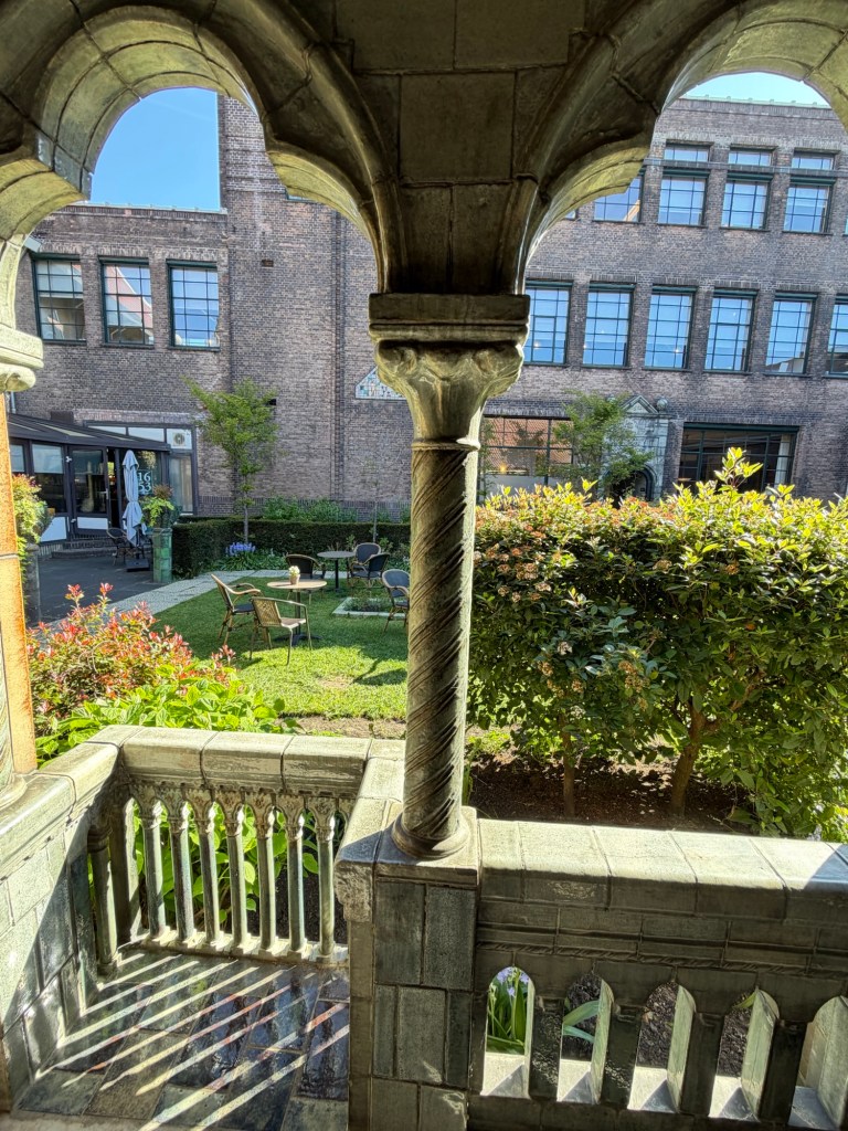 There is a central garden that includes significant tiles and artistic works from the company’s Golden era past.