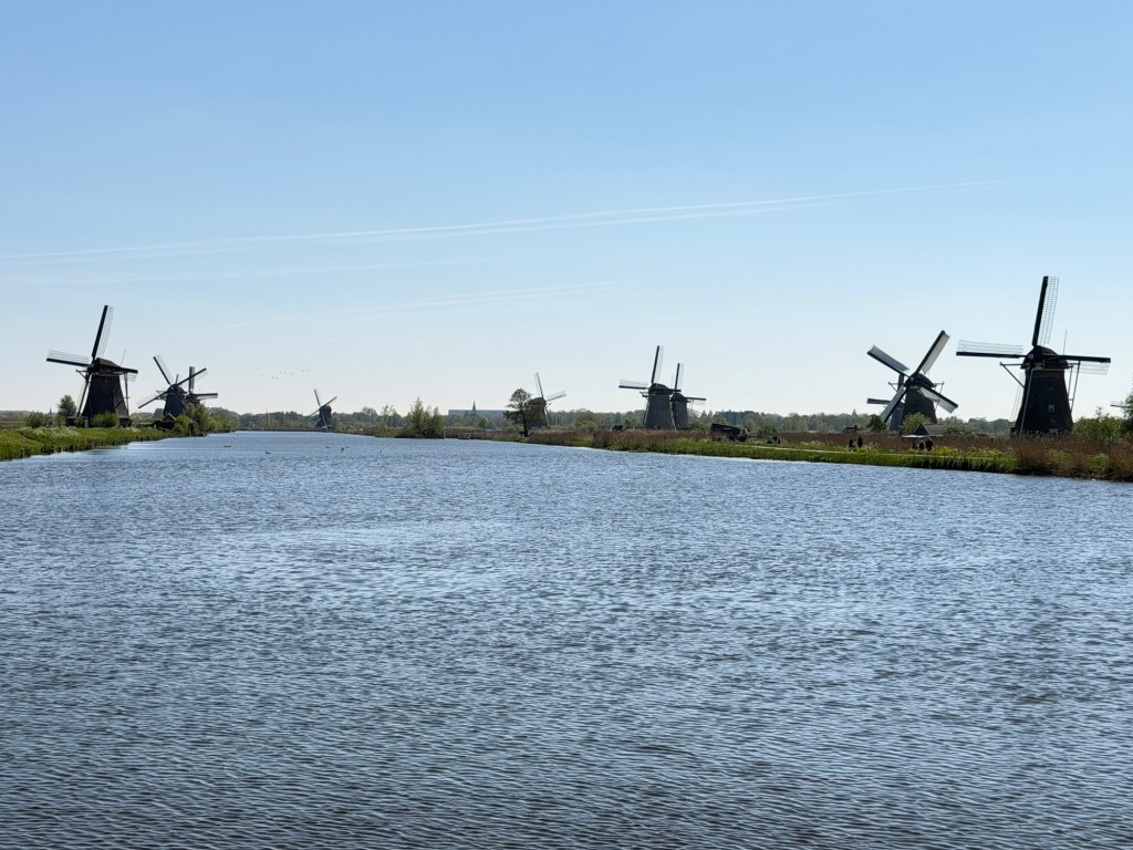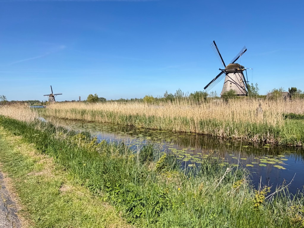 We then drove what seemed like a short distance to Kinderdijk (kinderdijk.nl), located in Molenlanden, where the landscape opens into a quiet, almost otherworldly scene. Long rows of 18th-century windmills stretch along narrow canals, their reflections mirrored in the still water, with footpaths tracing the tops of the dikes.