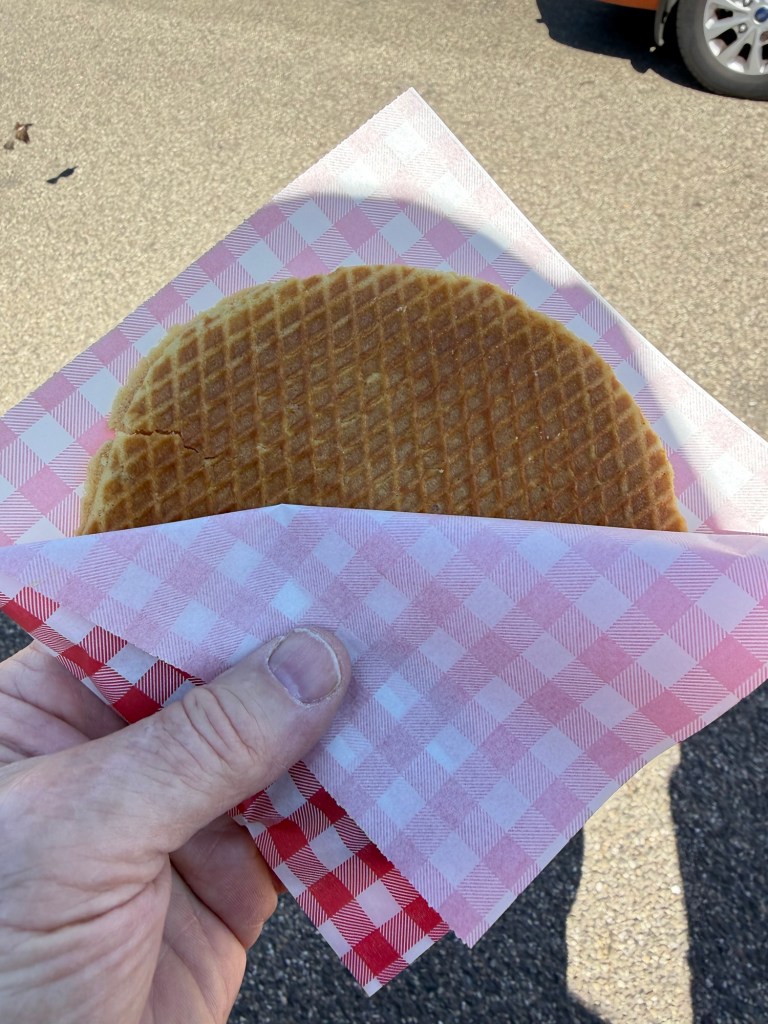 I picked a stroopwaffel from a street vendor while leaving Kinderdijk.