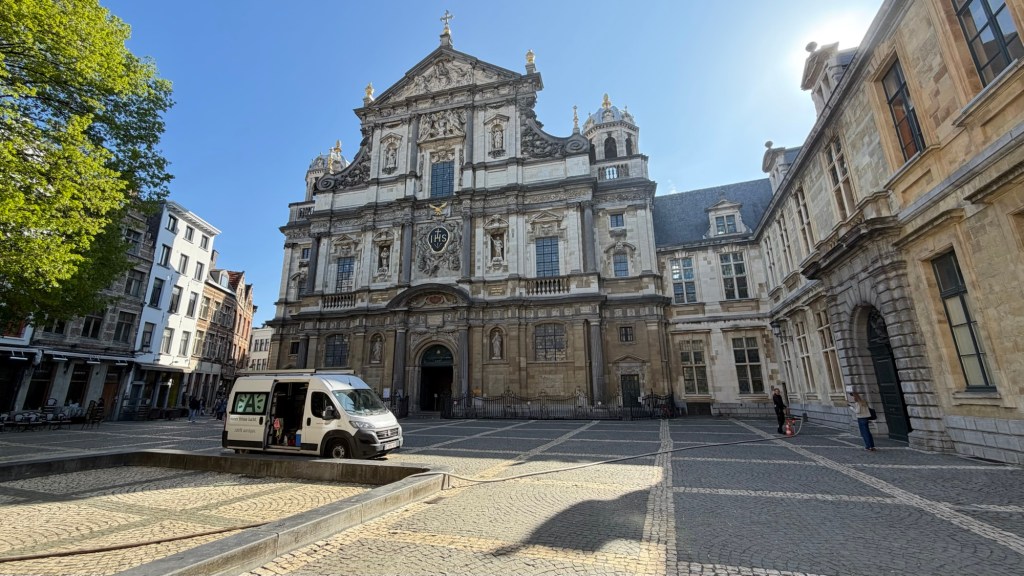 We continued on to the St. Charles Borromeo Church, where art and religion intertwine. The church has strong ties to Peter Paul Rubens, whose influence helped shape the grandeur inside. The original ceiling paintings, designed by Rubens, were destroyed in a fire in 1718, leaving behind a space that hints at a far more elaborate past.Herman used this stop to weave in the broader history of religious conflict in the region—Catholics, Protestants, shifting power, and the lasting marks those struggles left on the city.