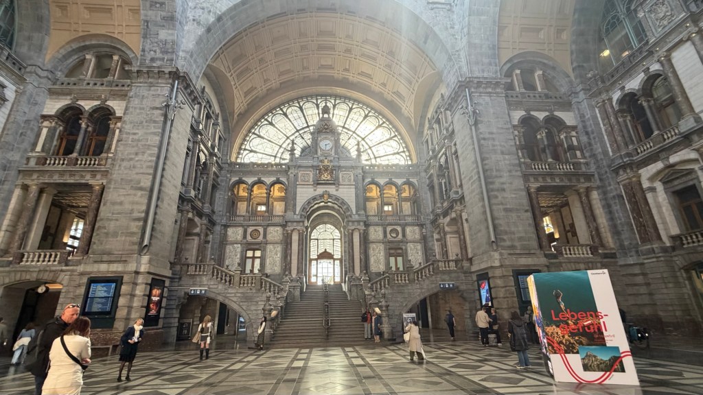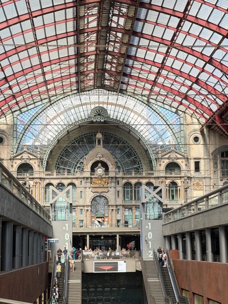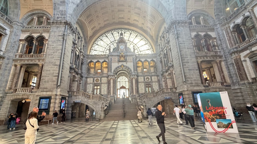 Our final stop brought us to Antwerp Central Station, often described as one of the most beautiful train stations in the world. It didn’t disappoint. The soaring dome, grand staircases, and layered platforms feel more like a cathedral than a transit hub—a fitting end to a day that moved seamlessly between history, art, commerce, and modern life.